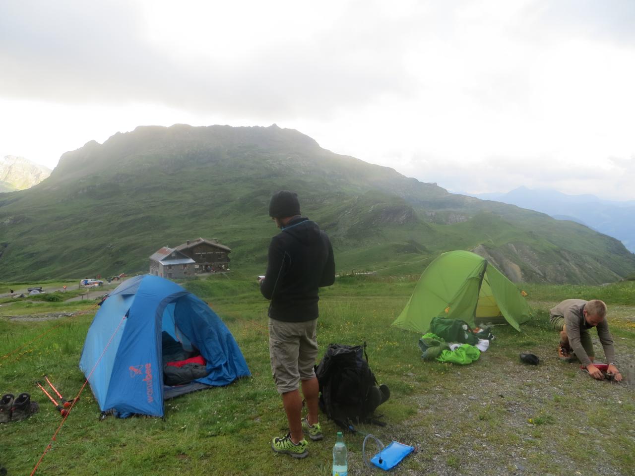 vue sur le refuge de Moede Anterne ou nous venons de passer la nuit.